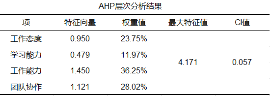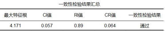 - 最大特征值和CI值:用于检验判断矩阵的一致性。