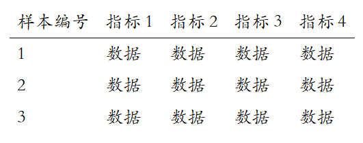 首先,准备好数据矩阵。数据矩阵的每一行代表一个方案,每一列代表一个评价指标。例如: