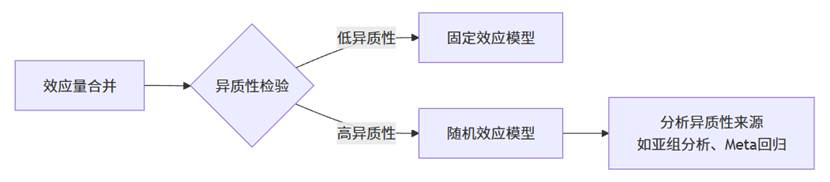 下图展示了异质性检验在Meta分析中的位置与逻辑: