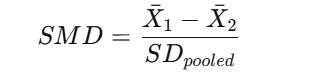 在连续性Meta分析中,最常用的效应量是标准化均值差(SMD)。它表示两组之间均值的差异,除以合并标准差,从而消除不同研究测量单位的差异。其计算公式为: