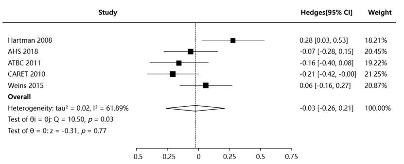 森林图不仅能展示各研究结果,还能直观反映异质性与合并效应。如果各研究的置信区间重叠较多,说明异质性较低;反之则高。