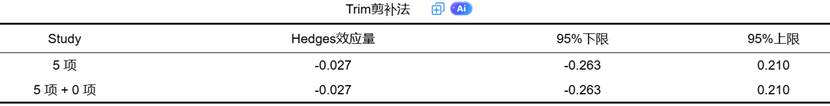 如果校正前后结果差异不大,说明发表偏倚对结果影响较小;反之,则需谨慎对待原始合并效应。