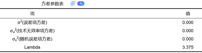 - λ的大小:λ值越大,表明技术无效率项(σ_u)相对于随机误差项(σ_v)在总体误差中占主导地位。换言之,产出与前沿面的差距主要源于管理、技术等内在因素,而非随机运气。