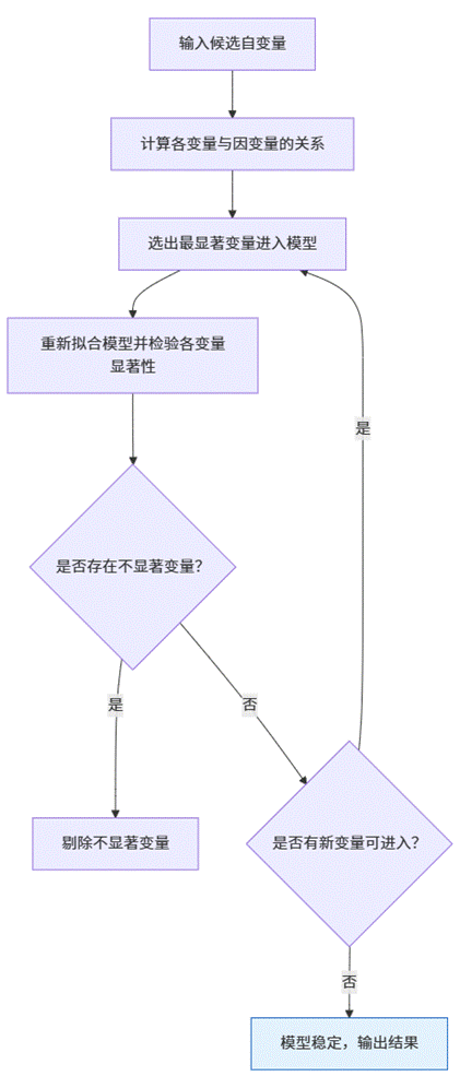 其核心思想是:在候选变量集中,逐步引入或剔除那些对模型解释力具有统计显著影响的变量,直到模型达到最优状态。