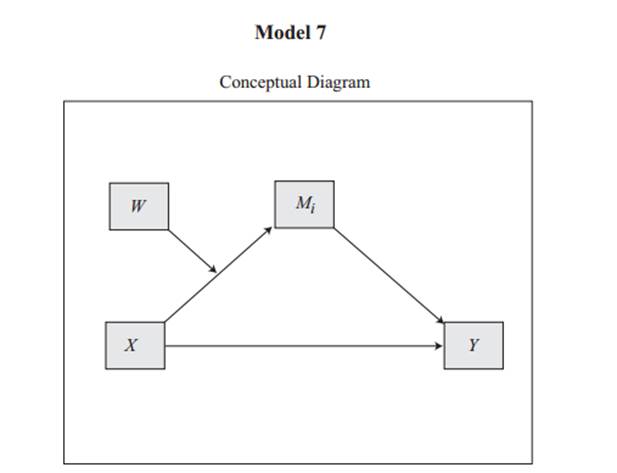 Model 7时:图中W即为调节变量。调节变量仅针对X->M这一条路进行调节。