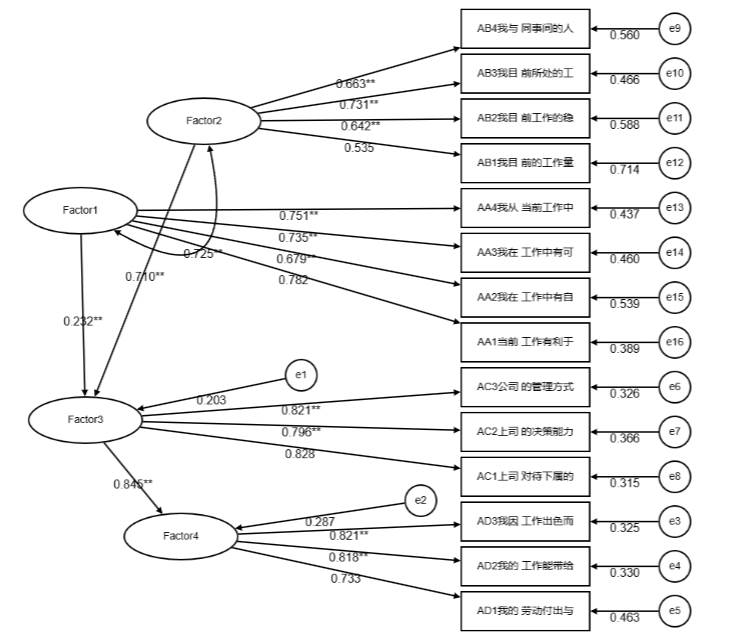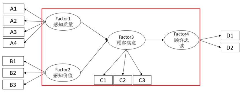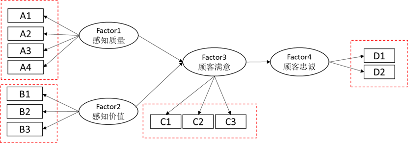 每个路径(Factor→Factor)代表一个理论假设:上级潜变量对下级潜变量的影响方向与强度。这些路径系数构成整个模型的“理论骨架”。