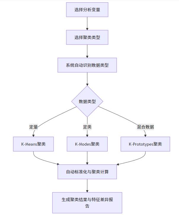 SPSSAU根据数据类型自动选择合适的聚类算法: