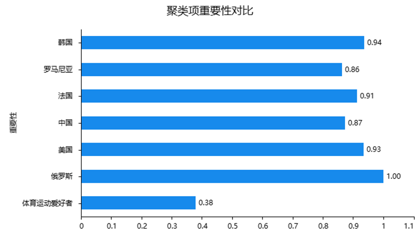 SPSSAU 还会在结果中给出“聚类贡献可视化”,展示各变量对聚类形成的影响程度。