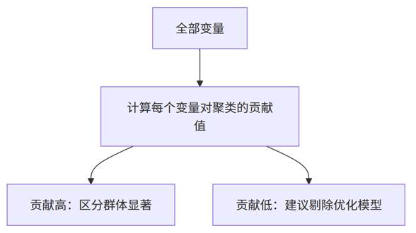 聚类贡献度通过图形化方式展示各变量对聚类形成的贡献大小,帮助识别关键区分变量。