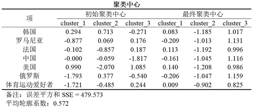 SPSSAU自动输出初始与最终聚类中心值对比,并自动显示误差平方和(SSE)与平均轮廓系数。
