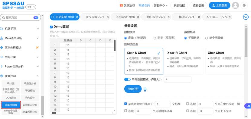 而SPSSAU的【质量控制】模块,正是将这一经典工具现代化、智能化的优秀代表。它的优势在于: