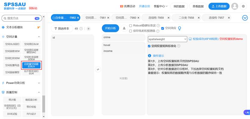 SPSSAU为SLX模型的应用提供了高效且专业的实现路径: