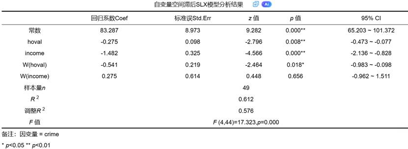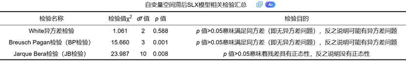 这张表格的作用在于使SLX模型的分析结果与SDM等模型的分析结果在报告格式上保持一致,便于比较与交流。