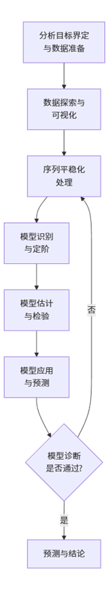 上图清晰地展示了时间序列建模预测的完整闭环。它始于明确的分析目标与干净的数据,核心在于通过一系列处理与检验将非平稳序列转化为平稳序列,并构建出最优的统计模型,最终用于可靠的预测。这是一个迭代优化、直至模型满意的科学过程。
