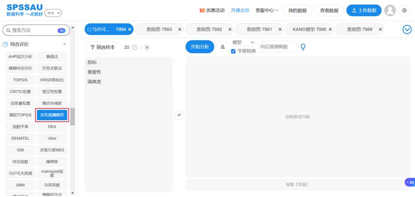 SPSSAU 中提供的 GM(1,1) 允许用户直接输入序列即可预测,特别适合指标数据缺失严重的情况下做趋势研判。