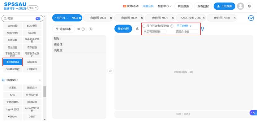 SPSSAU 中 SARIMA 与 ARIMA 的建模流程一致,系统会自动识别季节周期,非常适合做年度或季度预测。