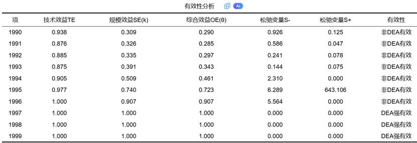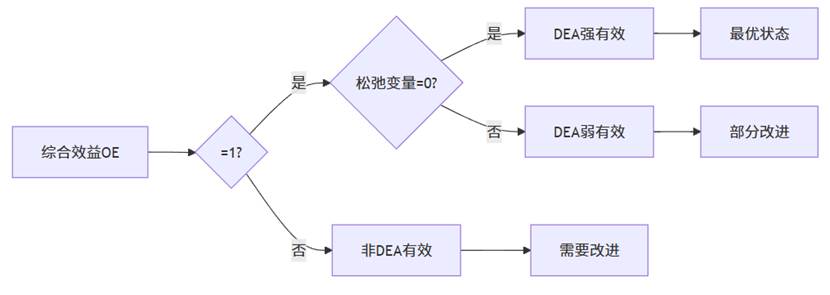 如上图所示,DEA有效性判断不仅考虑综合效益值,还需结合松弛变量分析。只有同时满足综合效益为1且所有松弛变量为0的决策单元才是DEA强有效的。