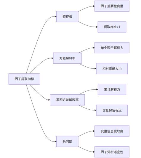 探索性因子分析涉及多类统计指标,它们共同构成了完整的因子分析评估体系。