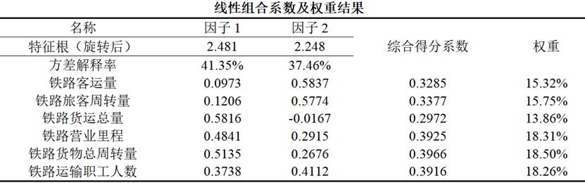 这个表格展示了各变量在综合得分中的权重分配,当我们需要计算综合得分或进行权重分析时,此表格提供必要的计算系数。