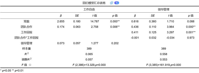 通过这张表和一目了然的简单斜率图,你就能用扎实的数据证据,讲述一个关于“机制边界条件”的完整、严谨的故事。SPSSAU分析结果示例如下: