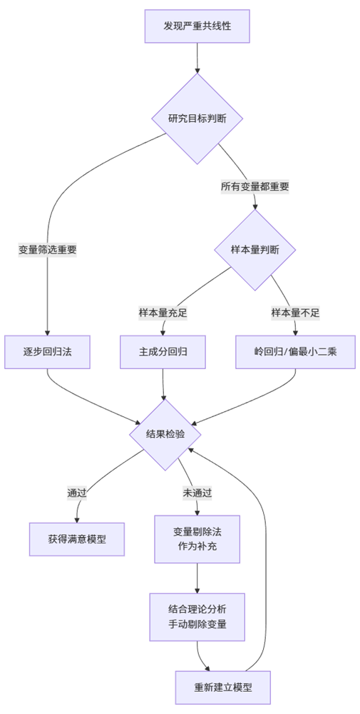 当确认存在严重多重共线性时,可采取以下处理策略: