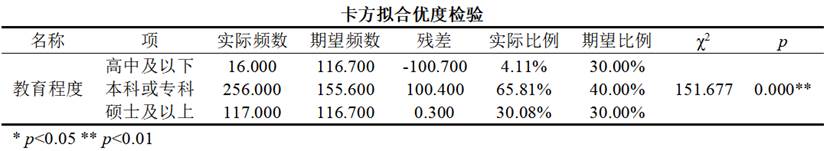 SPSSAU输出卡方拟合优度检验结果示例如下: