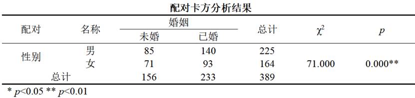 交叉表卡方检验是最基础的卡方检验形式,用于分析两个分类变量之间是否存在显著关联。SPSSAU卡方检验分析结果示例如下: