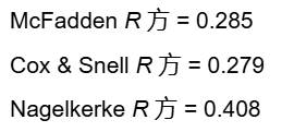 伪R方:包括McFadden、Cox & Snell和Nagelkerke R方,用于衡量模型对因变量变异的解释程度,类似于线性回归中的R方,但解释略有不同。