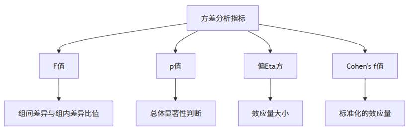 在进入事后检验之前,首先需要理解方差分析的检验指标: