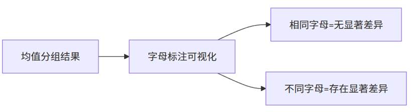 字母标注法提供了一种直观的组别归类方式:相同字母的组别间无显著差异;不同字母的组别间存在显著差异;同时提供0.05和0.01两个显著性水平的标注。
