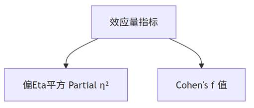 1、偏Eta平方 (Partial η²):衡量方差分析中自变量对因变量解释的方差比例。计算公式如下: