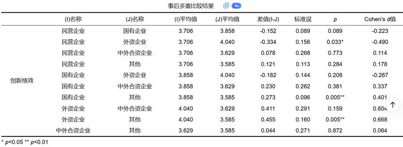 SPSSAU的事后检验输出包含丰富的统计指标,可分为模型检验指标、两两比较指标和效应量指标三大体系。