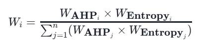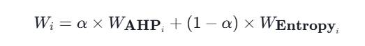 其中,Wi为第i项指标的组合权重,Wahp为AHP法得到的权重,Wentropy为熵值法得到的权重,α为偏好系数(0≤α≤1)。
