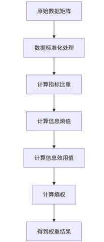 熵值法的计算流程如上图所示,主要包括数据标准化、指标比重计算、熵值计算和权重确定等步骤。SPSSAU平台内置了完整的熵值法计算模块,能够自动完成权重计算。