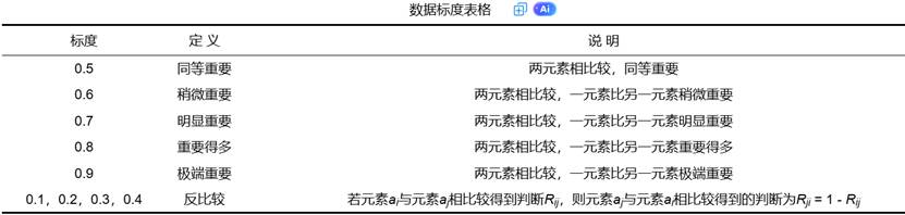 提供了模糊判断的量化标准。从0.5的"同等重要"到0.9的"极端重要",构成了一个完整的模糊判断尺度。值得注意的是,0.1-0.4标度作为反比较标度,体现了模糊判断的非对称性。