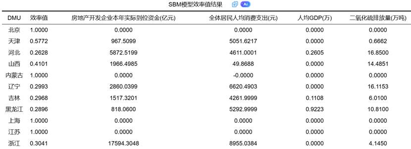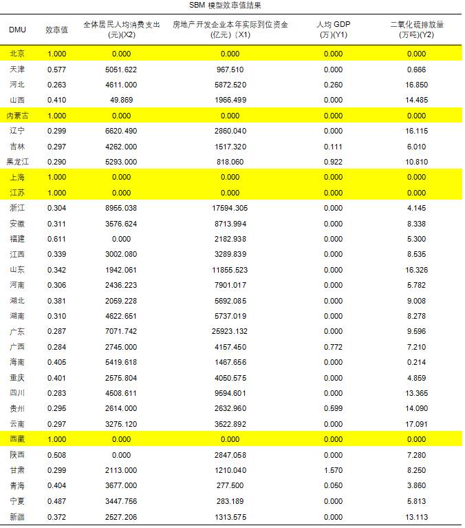需要特别注意的是,SBM模型得到的是相对效率而非绝对效率,效率值为1只表示在当前评估群体中相对有效,并不代表已经达到理论最优状态。