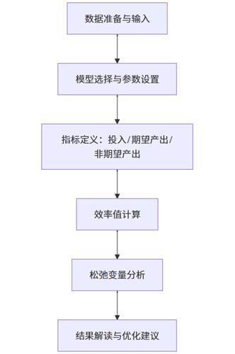 SPSSAU平台中的SBM模型分析遵循一个清晰、逻辑严密的流程,从数据准备到结果解读,每一步都旨在确保分析的准确性和可操作性。以下通过Mermaid图展示完整的分析步骤: