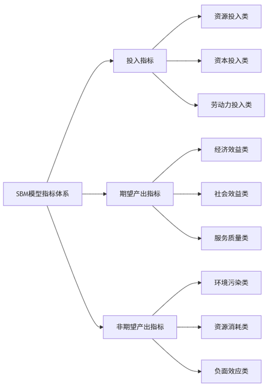 在SBM模型中,指标通常分为三类:投入指标、期望产出指标和非期望产出指标。