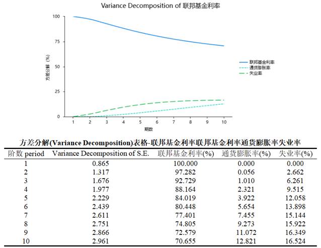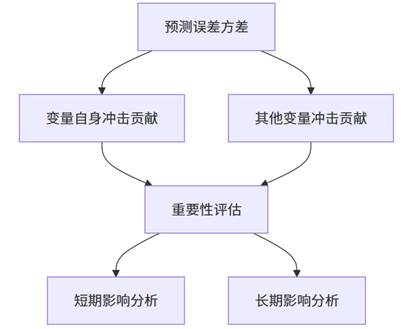 方差分解将预测误差方差按成因分解,量化各变量的相对重要性: