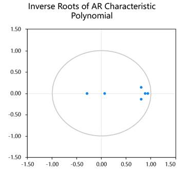 从AR特征根图可知,所有特征根值均在单位圆之内,意味着构建的VAR模型稳定性较好。