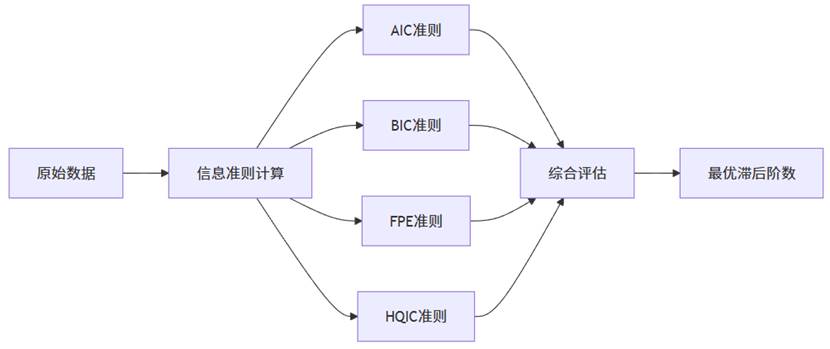 滞后阶数决定变量过去值对当前值的影响时长,是VAR模型的核心参数之一。SPSSAU采用多准则自动定阶方法,平衡模型的简洁性与拟合优度。