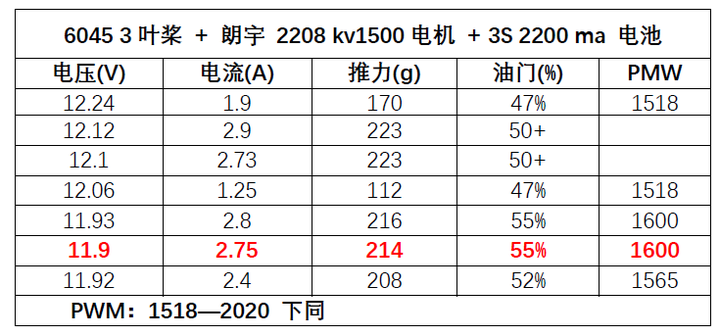 查了好几种电机的参数,要体积小、重量轻、价格便宜、方便购买不小众,综合下来大概只有2208这个级别比较合适。但即便是这种使用很广泛的电机,不同KV电机对应不同规格螺旋桨的运行参数也很缺乏。只有自己进行测试了。