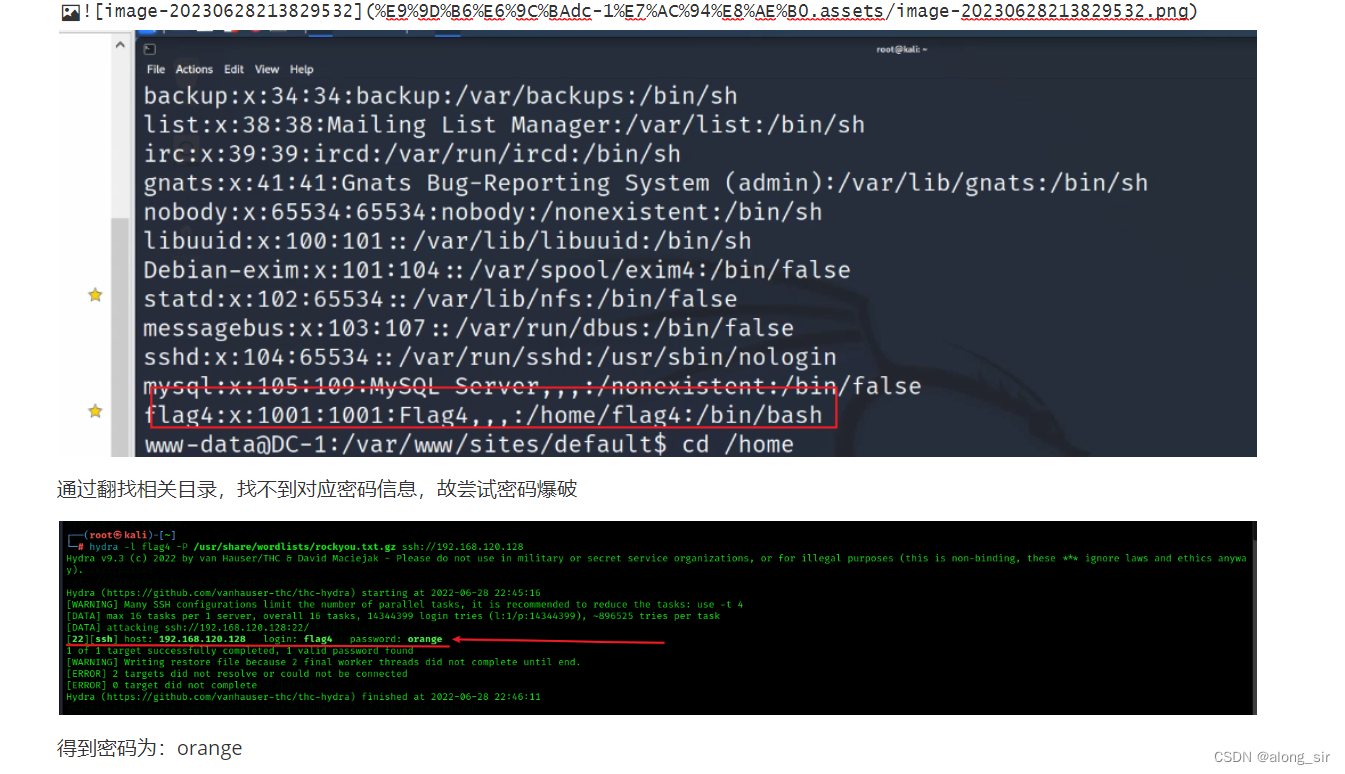 1.通过提示,查找根目录下面的用户信息,查到flag4用户