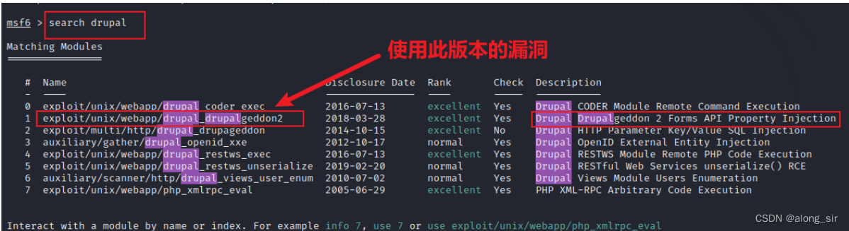use exploit/unix/webapp/drupal_drupalgeddon2