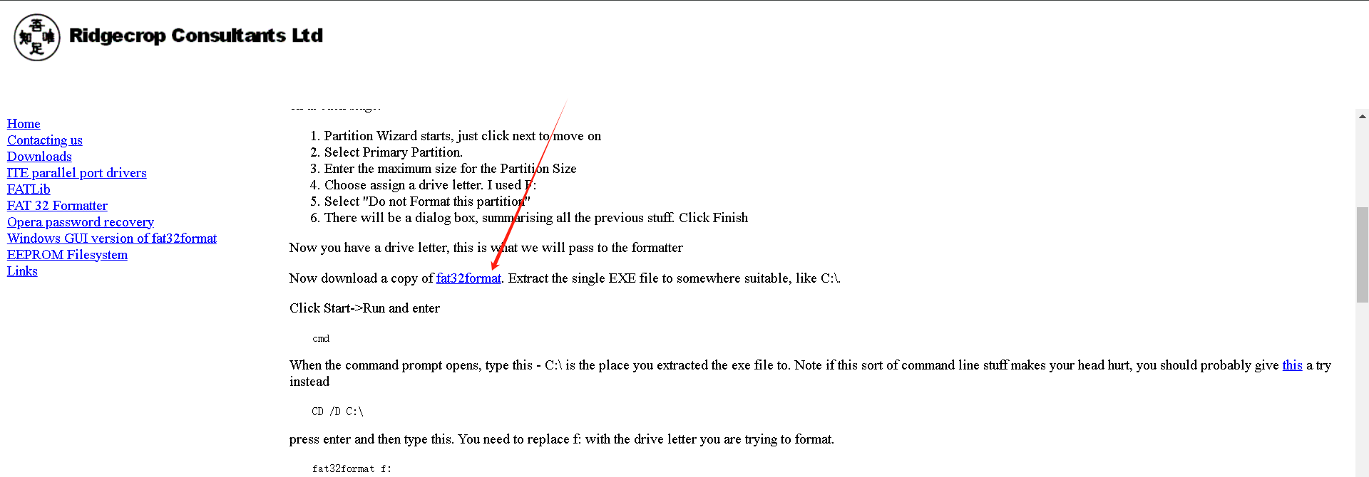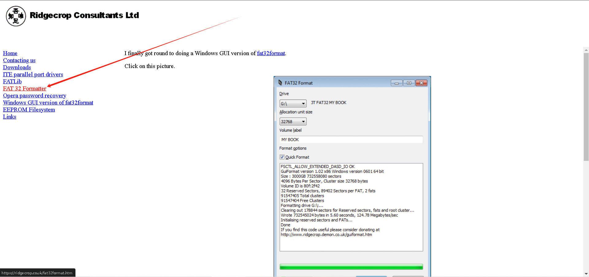 guiformat.exe)。 - 现在官网页面改了,现在不是点击Downloads而是点击FAT 32 Formatter进入使用说明页找到下载详情