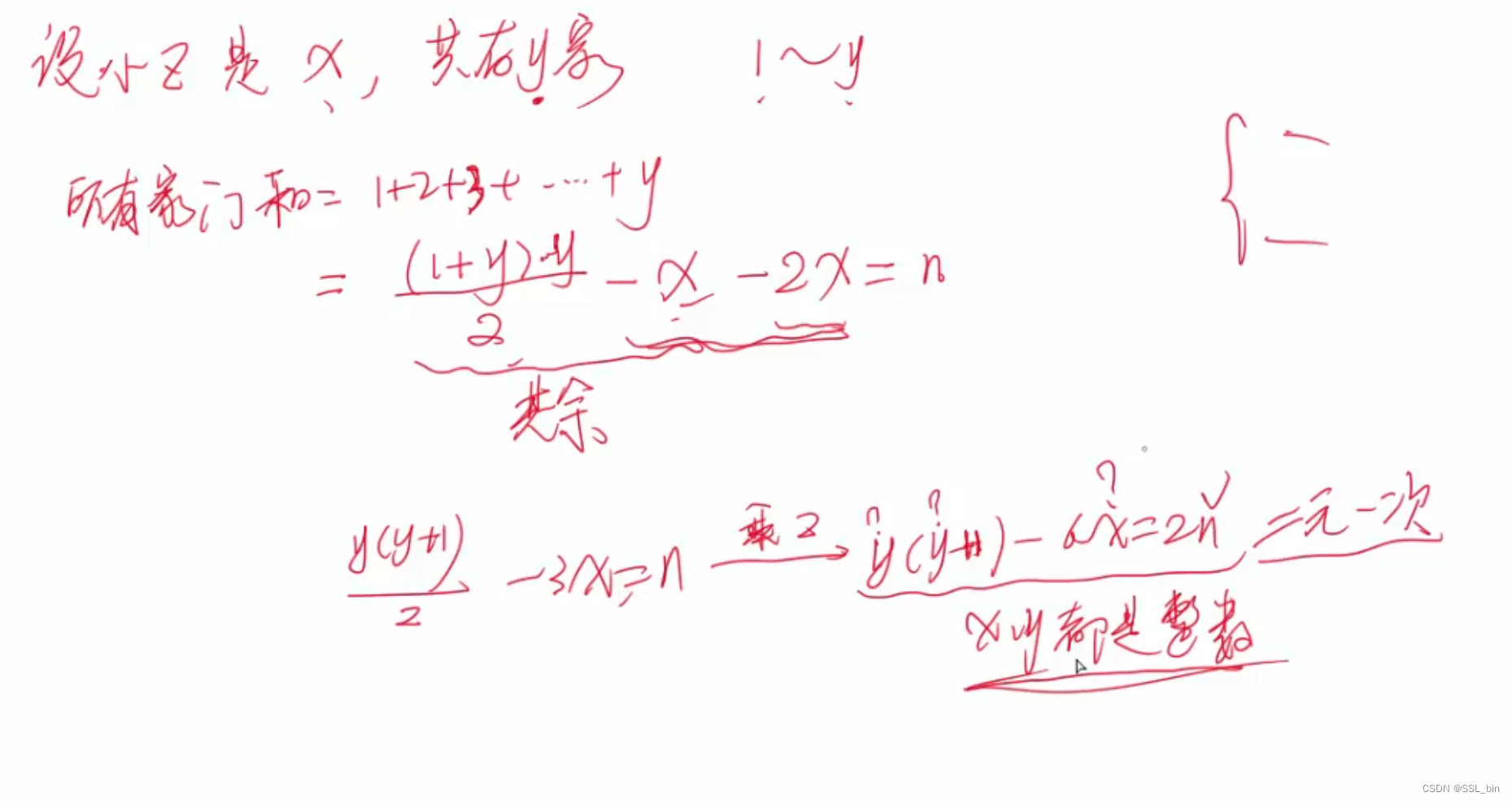 去分母合并同类项移项得 小z=(i*i+i-2*n)/6 (枚举房总数为i)