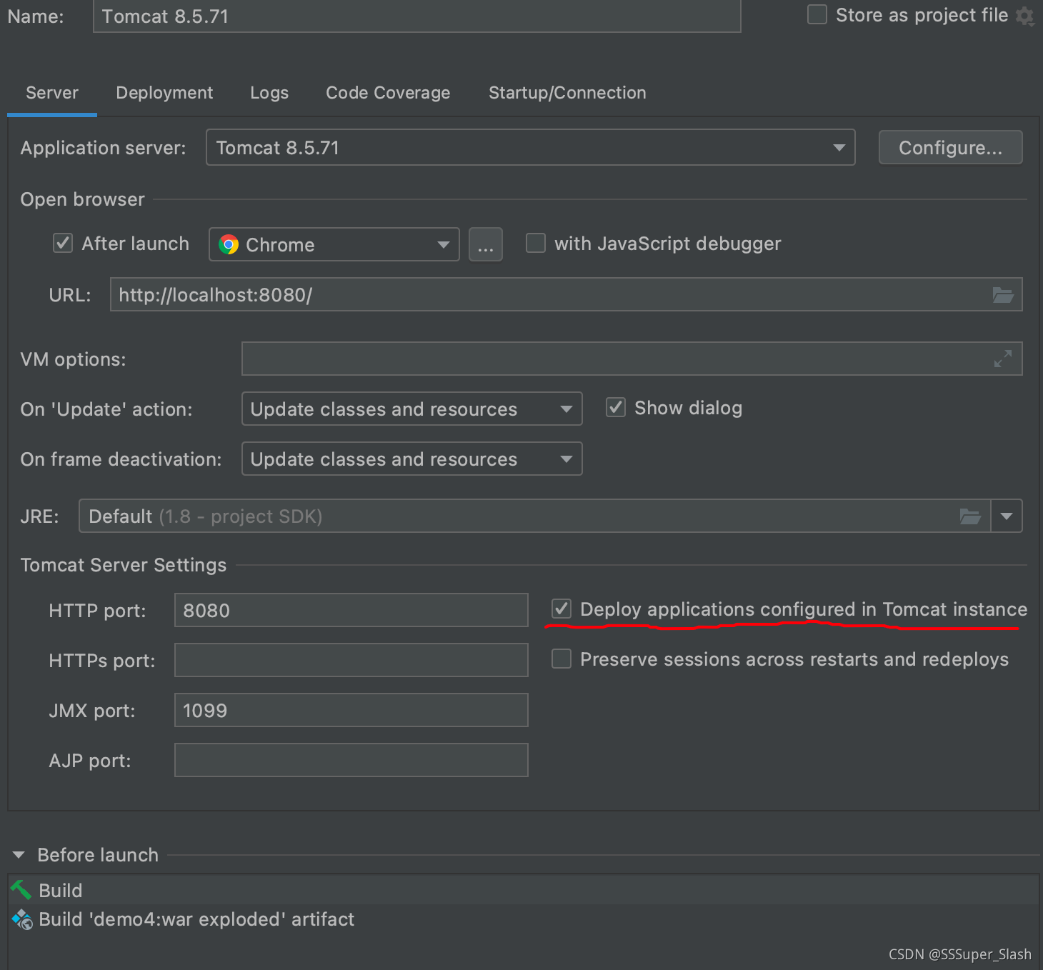 加上这一条之后还没结束,必须在idea上配置一个东西,否则刚刚server.xml的更改无效,具体如图:
