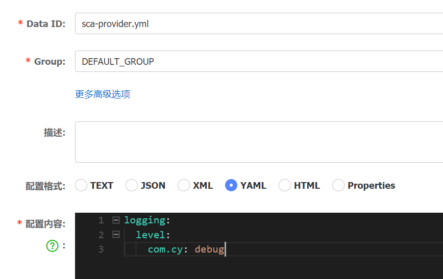 打开nacos配置中心,新建配置,如图所示: