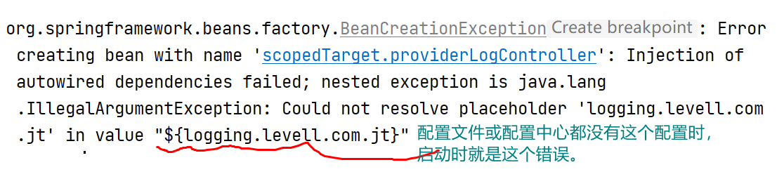- 程序中服务读取配置时,找不到配置,例如: