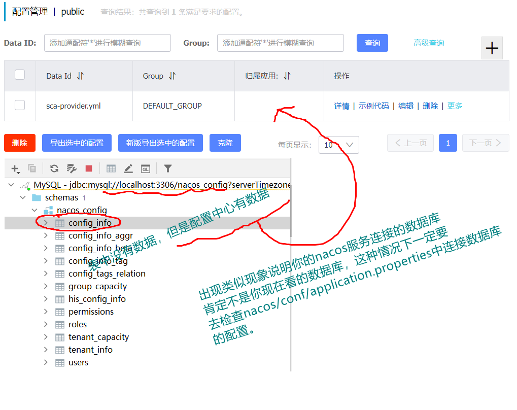 - mysql中没有配置中心数据,例如: